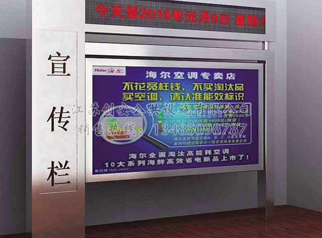 宣傳欄廠家-江蘇創(chuàng)安公共設(shè)施有限公司是一家國(guó)內(nèi)知名的專業(yè)從事宣傳欄,公交候車亭,精神堡壘,法治宣傳欄,消防宣傳欄,部隊(duì)宣傳欄,校園文化宣傳欄整體規(guī)劃、設(shè)計(jì)、生產(chǎn)制作、安裝、售后服務(wù)及產(chǎn)品研發(fā)于一體的宣傳欄制造有限公司。
