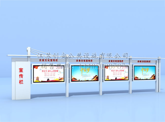 宣傳欄廠家-江蘇創(chuàng)安公共設施有限公司是一家國內知名的專業(yè)從事宣傳欄,公交候車亭,精神堡壘,法治宣傳欄,消防宣傳欄,部隊宣傳欄,校園文化宣傳欄整體規(guī)劃、設計、生產制作、安裝、售后服務及產品研發(fā)于一體的宣傳欄制造有限公司。